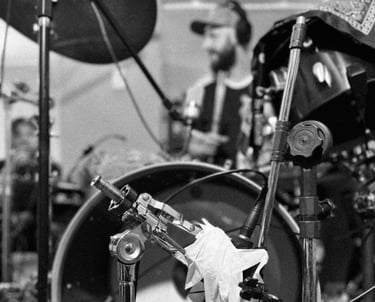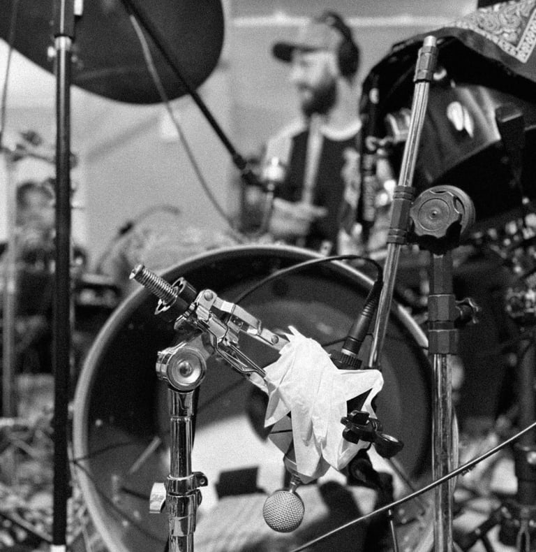 Gravações de até 16 canais de bateria captados com microfones de ponta e equipamentos analógicos.